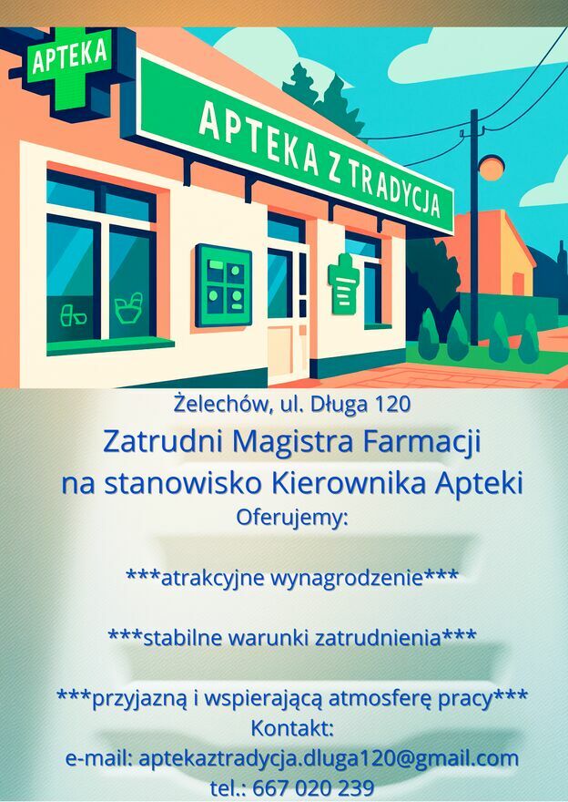 zatrudnię MAGISTRA FARMACJI NA STANOWISKO KIEROWNIKA APTEKI